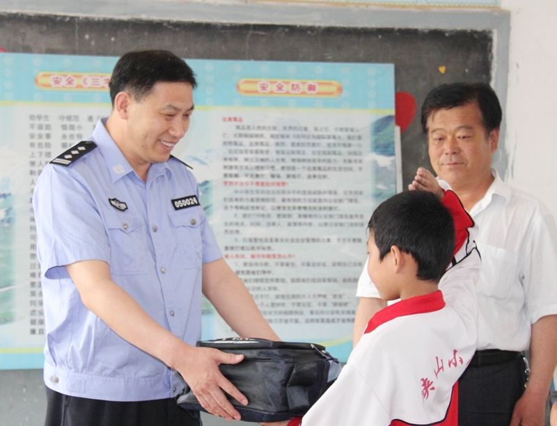 法制進校期間,分局專門聯系品學兼優的家庭貧困生,與分局民警結成幫扶對子,并為貧困生發放了學習用品,為家庭購置米面等生活必須品,勉勵孩子繼續刻苦學習,將來成為社會棟梁之材。