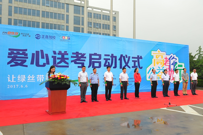 為確保廣大考生順利趕考,6月6日上午,山東省臨沂市2017“綠絲帶”愛(ài)心送考大型公益行動(dòng)在正式駕校正式啟動(dòng)。