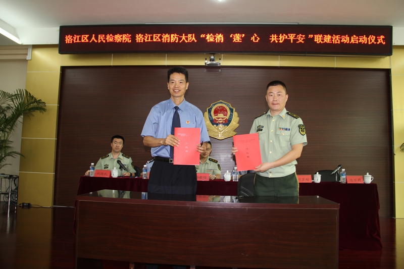 6月14日上午, 福建泉州洛江區人民檢察院聯合洛江區消防大隊開展“檢消‘蓮’心 共護平安”聯建活動啟動儀式,標志著洛江區“檢察官工作室”正式入駐消防大隊。