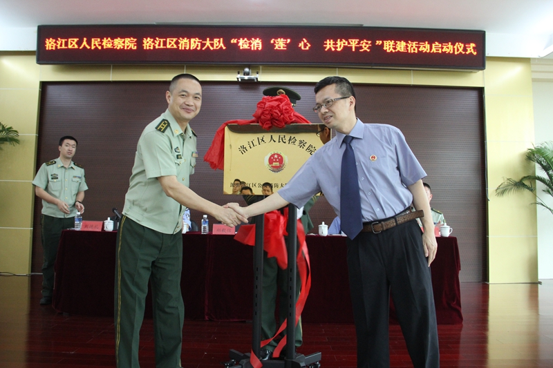 當天,洛江區消防大隊宣讀了《關于開展“檢消‘蓮’心?共護平安”聯建活動的意見》。雙方共同簽署了《洛江區人民檢察院 洛江區公安消防大隊關于共建“檢察官工作室”的協議書》。同時雙方為“洛江區人民檢察院派駐洛江區公安消防大隊檢察官工作室”揭牌。