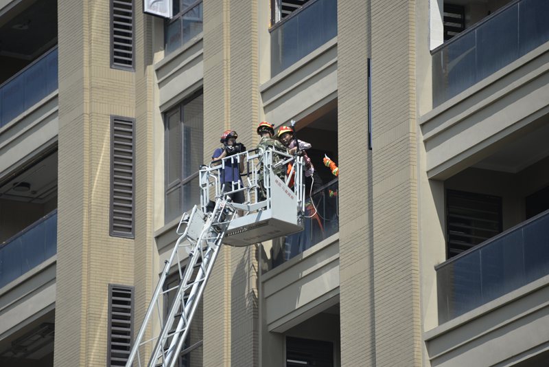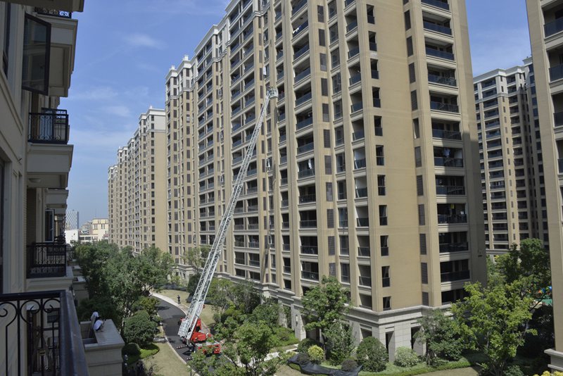消防登高云梯到場(chǎng)解救高層住宅“被困群眾”