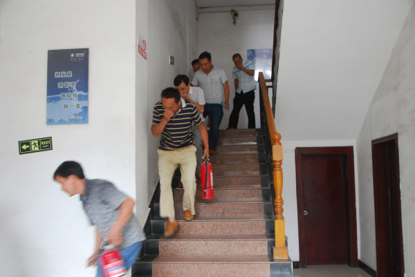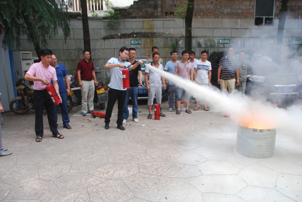 培訓結束后大隊防火宣傳人員現場組織了滅火逃生疏散演練,接下來在空地現場教授了滅火器的使用方法并進行滅火演示,并要求參培人員演練使用滅火器的操作步驟,讓他們有效掌握了滅火器使用方法。