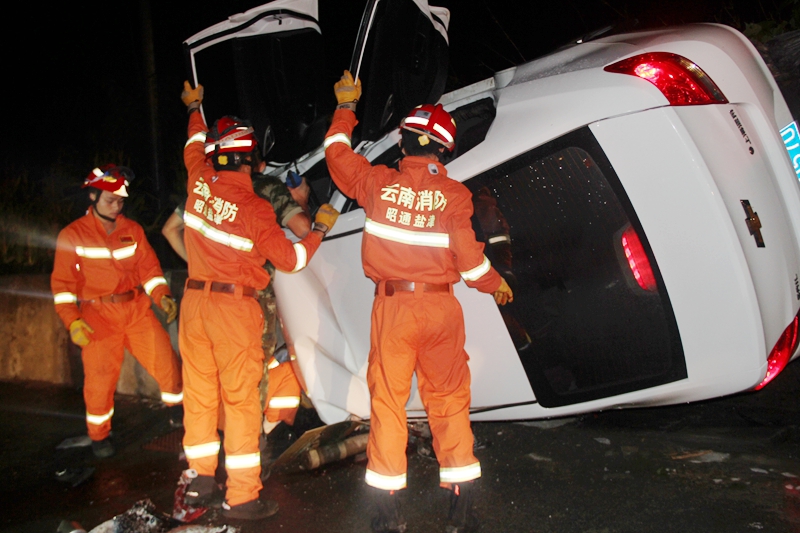 8月4日凌晨1時許,云南昭通市鹽津縣中和鎮渝昆高速竹麻林六井壩加水站前發生一起小轎車側翻事故,事故造成4人被困,情況十分緊急。