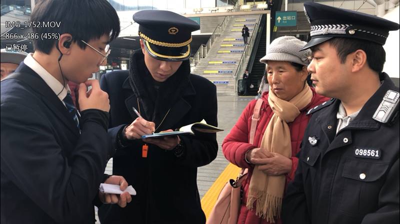 1月23日19時20分,在滬昆高鐵新化南站出站口,一個背著大包小包的老太太,找到執勤的長沙鐵路公安處新華南站派出所民警吳杰,一臉焦急地說自己坐錯了車,和生病的老公走散了,不知道該怎么辦。眼看著她急得團團轉,民警勸其不要著急,并將她帶至執勤室了解情況。