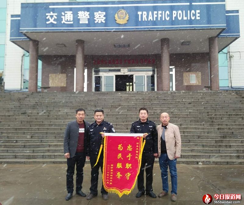 12月14日上午,山東臨沂臨港鶴洋木業的員工將一面寫有&ldquo;忠于職守 為民服務&rdquo;的錦旗送到了山東臨沂河東交警大隊特勤中隊民警張海波和輔警嚴海龍手中, ... [更多詳細]