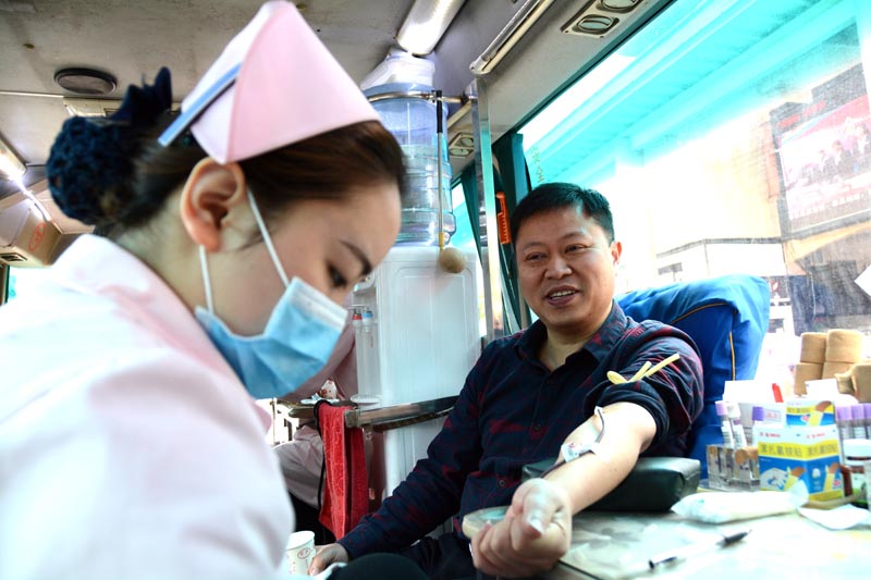 黃春華在衛生員的幫助下擼袖獻血。 3月17日,在江西省金溪縣獻血點,某電商老板黃春華帶領經體檢合格的員工,擼起袖子把血獻,以實際行動學雷鋒, ... [更多詳細]