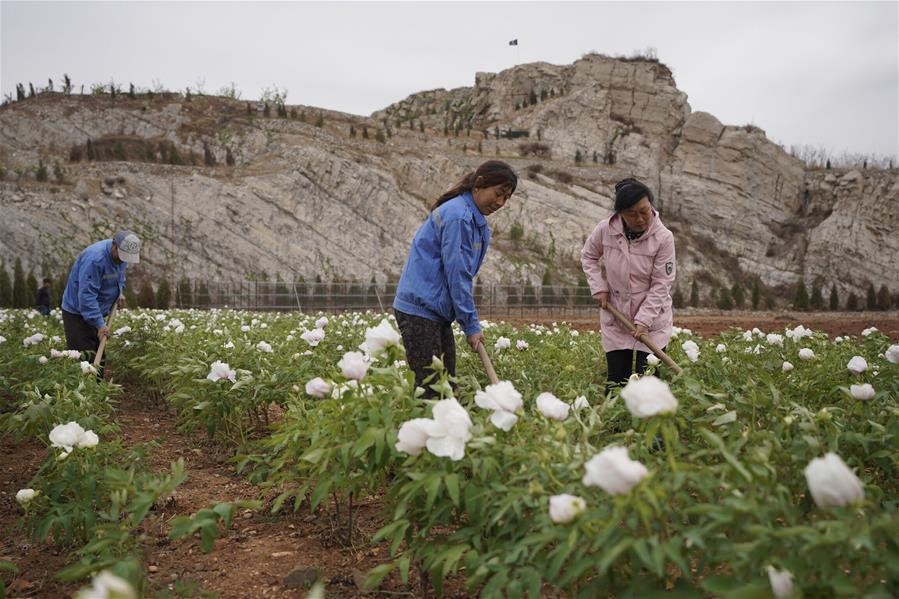 4月24日,工作人員在椅子山采石場(chǎng)護(hù)理油牡丹。椅子山采石場(chǎng)位于河北省灤州市,被關(guān)閉取締后,成為礦山環(huán)境恢復(fù)治理試驗(yàn)區(qū)。昔日的荒山,現(xiàn)在試驗(yàn)種植各種綠色 ... [更多詳細(xì)]