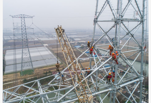 資料圖:施工人員正在新建鐵塔上進行施工作業(無人機拍攝)。新華社記者 徐昱 攝 我國第二條500千伏超高壓、長距離、大容量的南方主網與海南電網二回聯網工程3 ... [更多詳細]