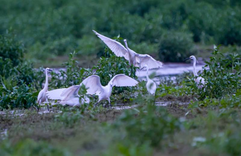 成群的白鷺在寒山水庫的濕地內(nèi)落腳。 盛夏時節(jié),在廣西玉林市的寒山水庫,白鷺三五成群,或閑庭信步,或追逐嬉戲,勾勒出一幅和諧的自然畫卷。(張鈺斌、鐘勇 ... [更多詳細]