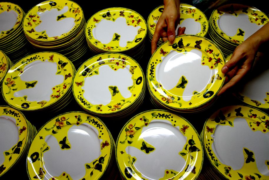 6月25日,河北省邯鄲市峰峰礦區裕行陶瓷有限公司工人在查驗陶瓷白坯質量。河北省邯鄲市峰峰礦區盛產陶瓷,全區目前擁有陶瓷企業90余家,從業人員2萬多人,主要產品有日用陶瓷、藝術陶瓷、建筑陶瓷等。隨著“一帶一路”倡議的推進,峰峰礦區陶瓷產業迎來新的發展機遇。目前該區年出口陶瓷1.2億件,產品暢銷東南亞、中東等地區。