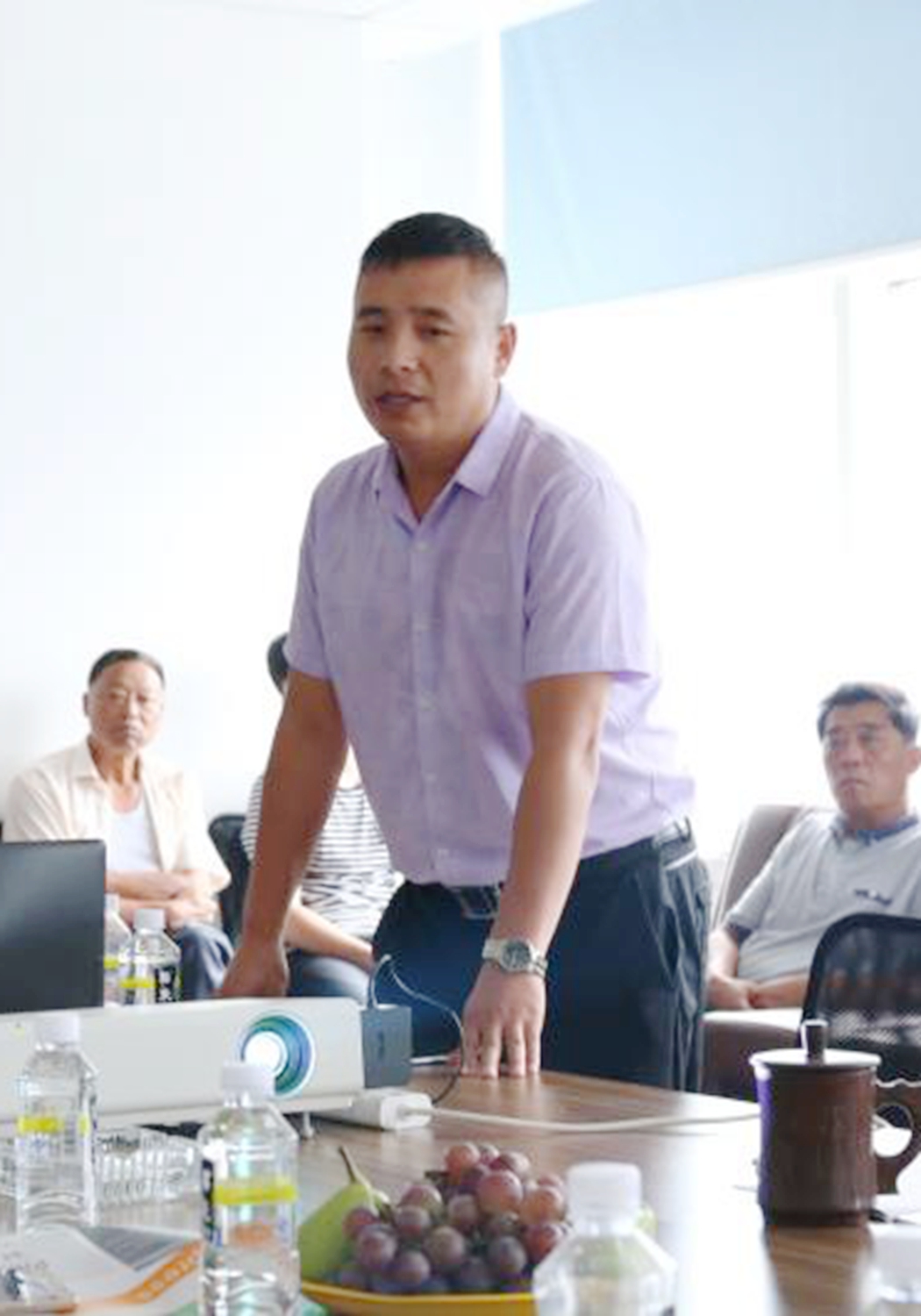 雙創(chuàng)導(dǎo)師、愛迪購車高級顧問趙勇坤(左二) 向與會代表介紹購車新模式理念