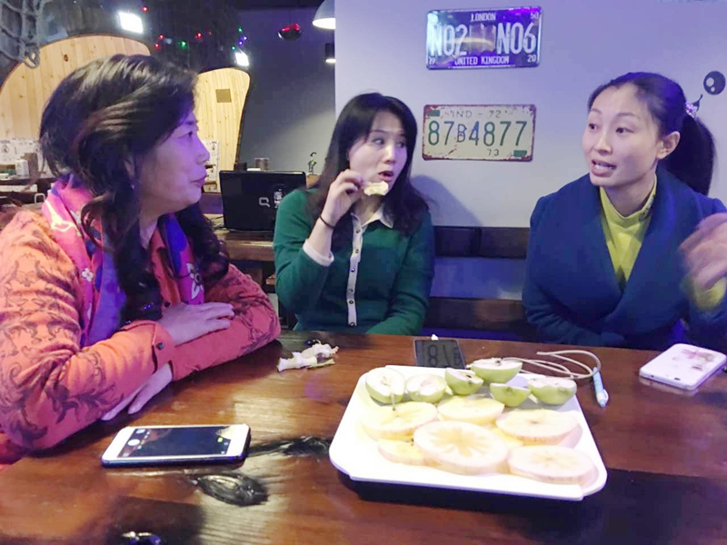 王學華在傾聽女朋友對冰糖心蘋果和庫爾勒香梨的評價