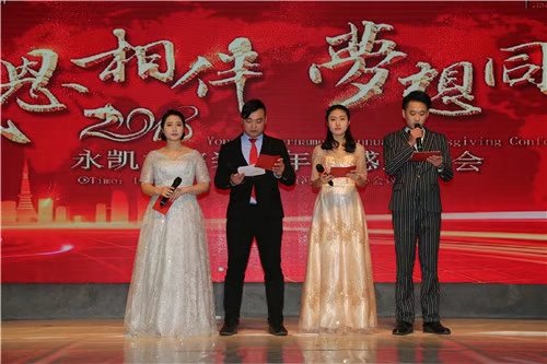 本次大會以"感恩相伴 夢想同行"為主題,永凱大宅裝飾東營各大建材合作伙伴、東營市旗袍協會、黃河口智商會、中國獅子聯會山東東營獅子會、新老客戶及全體員工和家屬近300人齊聚一堂參加感恩大會。溫暖的紅色背景,金燦燦的主題LOGO寓意著豐收的喜悅,頒獎典禮讓到場嘉賓感受到永凱大宅裝飾榮譽的過去與充滿激情的未來。