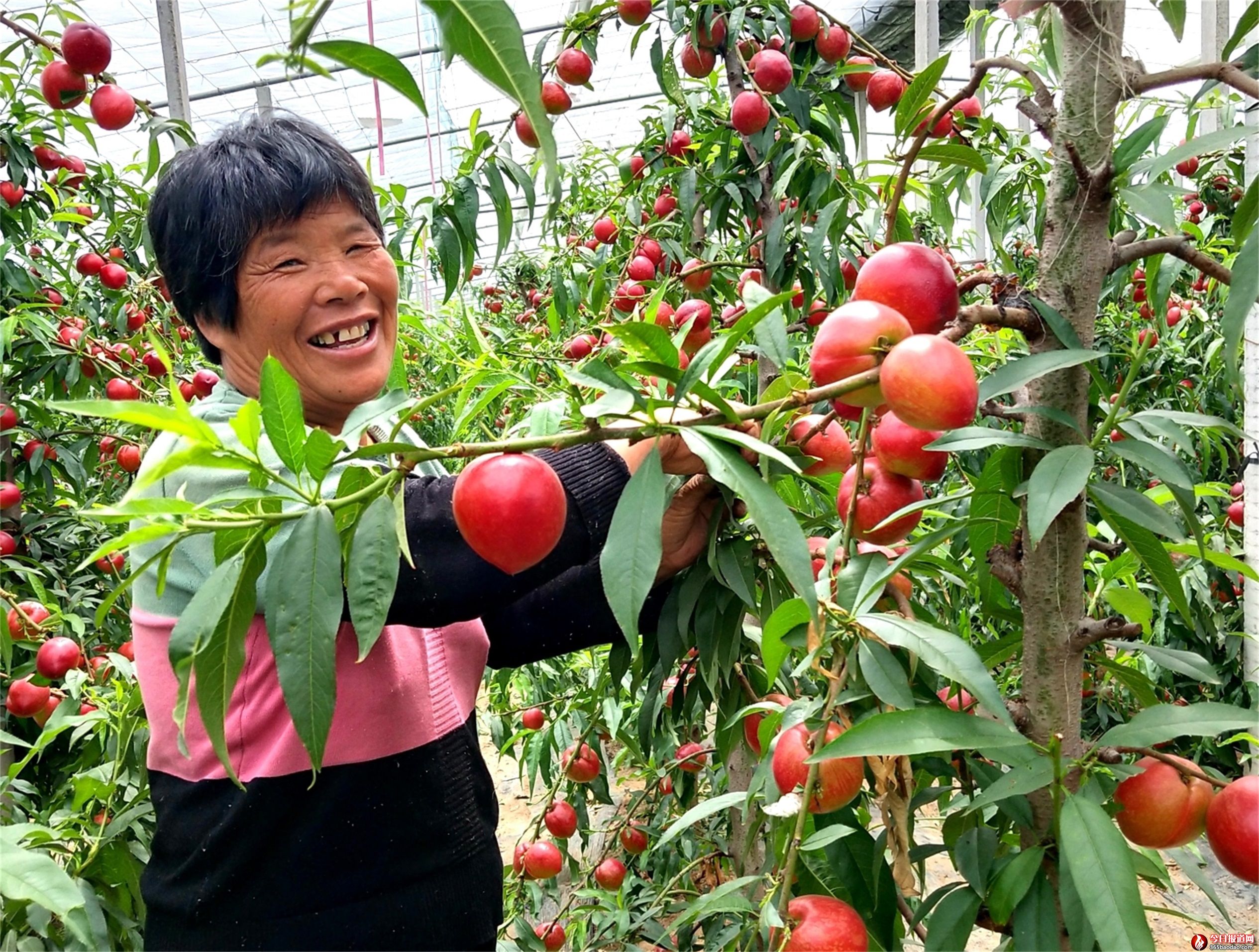 5月16日,在山東省郯城縣馬頭鎮花園社區黃金殿油桃種植園區,66歲的果農李金玲看到自己辛勤耕耘的中油126油桃, 色澤艷麗,果滿枝頭,一天一個變化,豐收的喜悅也 ... [更多詳細]