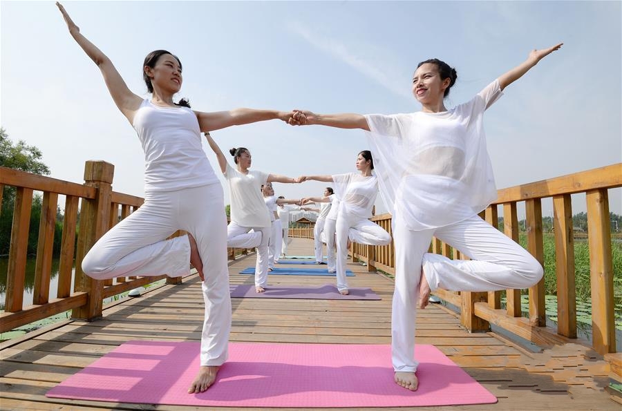 6月20日,河北省邯鄲市峰峰礦區的瑜伽愛好者在清泉公園練習瑜伽。  聯合國于2014年宣布6月21日為國際瑜伽日,旨在提高人們對于練習瑜伽可以帶來諸多益處 ... [更多詳細]