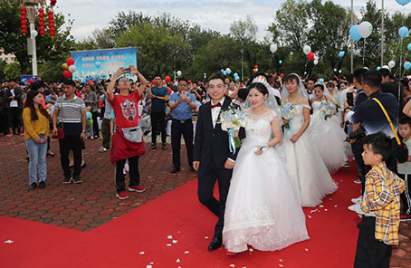 北京航天城婚禮現場。王泗江 攝 中秋佳節,航天戰線的200對新人&ldquo;讓祖國見證幸福&rdquo;主題集體婚禮13日上午10時10分在北京航天城、東風航天城、文 ... [更多詳細]