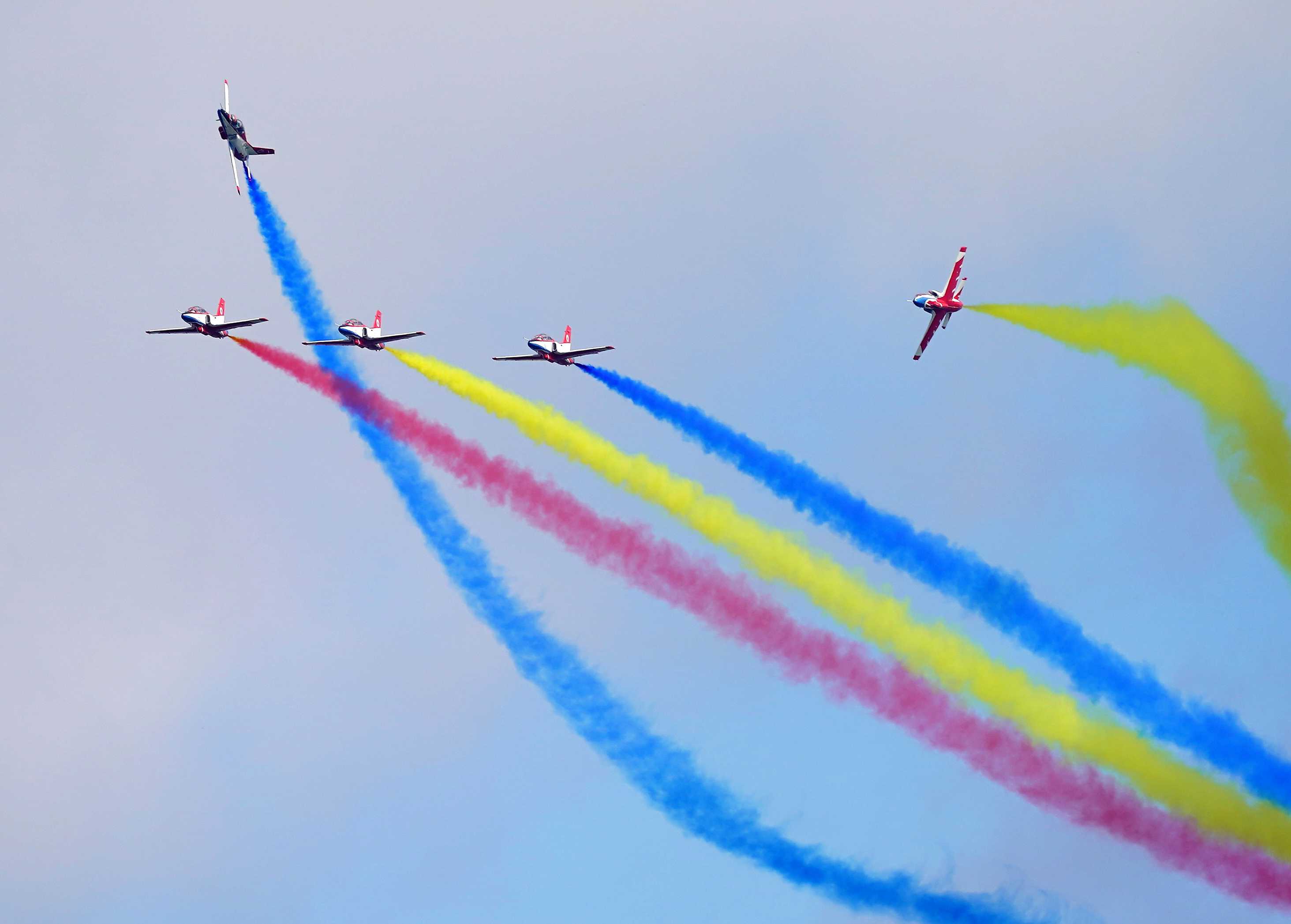 資料圖:8月30日,&ldquo;紅鷹&rdquo;飛行表演隊在空軍航空開放活動上進行飛行表演。新華社記者 王東明攝&ldquo;紅鷹&rdquo;飛行表演隊首次炫舞中國航展6日至11 ... [更多詳細]