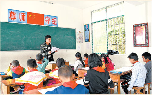 11月17日,吳周成在教室里給學生上課奉獻的精神,讓這座大山里的微小學繼續書聲瑯瑯