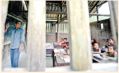 2014年5月26日,黃開亮在吊腳樓教室里給學生上課