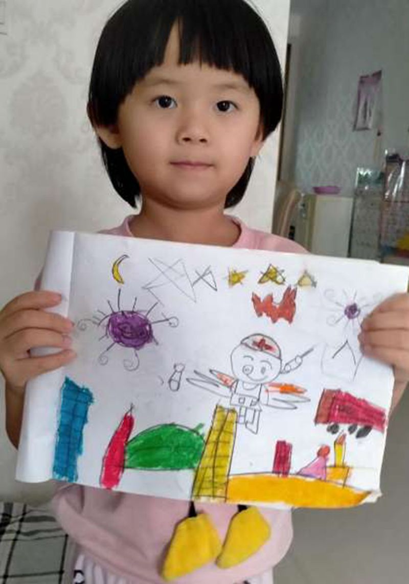 而在孩子們的世界里,這些不讓爸爸“回家”的病毒,是怎么樣的呢?近日,新疆巴州森林消防支隊居家的孩子在家人的幫助下拿起自己最愛的畫筆,用自己獨特的方式,把這幾天聽到的防疫知識、戰疫故事,畫成一幅幅充滿童趣而又飽含深情的繪畫作品,給白衣天使們吶喊助威,為中國加油!為武漢加油!也為這場“戰疫”添上自己的一份力。下面,就讓我們來看看這些有愛的“萌娃”作品吧!