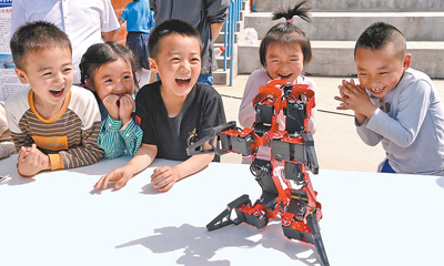 5月24日,小朋友被一款機器人科普展品吸引。楊昕攝(影像中國)  當日,甘肅省平涼市科技活動周&ldquo;科技大篷車&rdquo;主題活動走進平涼市第十中學。豐富的 ... [更多詳細]