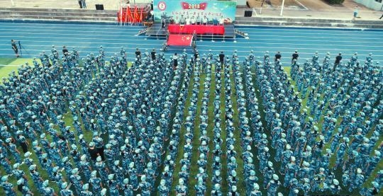 航拍下的新生軍訓隊伍。 9月1日,開學第一天,江西省泰和縣第二中學舉行高一新生軍訓開訓儀式,開啟了為期九天九夜的軍訓大幕。該校1000多名高一新生參加了開 ... [更多詳細]