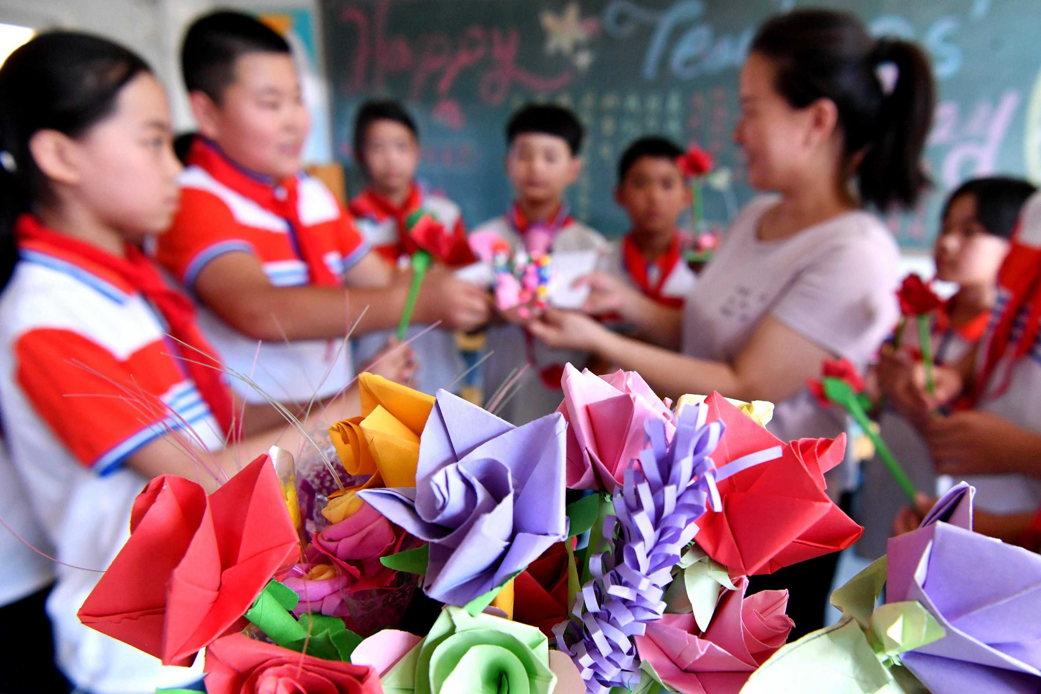 資料圖:2018年9月7日,學生們把制作的手工藝品送給老師。新華社記者 王曉 攝廣州日報東莞訊 (全媒體記者王其琪攝影報道) 昨天是教師節,不少學校都洋溢著節日 ... [更多詳細]