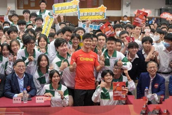10月12日,中國短跑運動員蘇炳添出席在香港培僑中學舉行的&ldquo;與冠軍同行&mdash;&mdash;走進香港培僑中學&rdquo;活動,與師生交流,及講述冠軍故事。圖為蘇炳 ... [更多詳細]