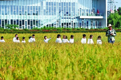 在浙江省湖州市吳興高新區靈糧農場,農技人員帶領小朋友參觀稻田,介紹種糧知識。新華社發 ... [更多詳細]
