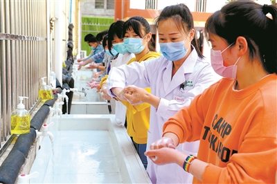 5月13日,廣西桂林市龍勝各族自治縣龍勝小學二年級的學生在&ldquo;開學第一課&rdquo;上學習洗手消毒方法。新華社發   時隔多月之后,教育部12日迎來了新冠 ... [更多詳細]