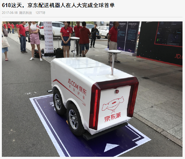 正當京東618活動進行得如火如荼的時候,作為京東智慧物流體系生態鏈中的終端,京東配送機器人于今日(6月18日)正式在人大上路,并且順利完成了全球首單配送任務 ... [更多詳細]