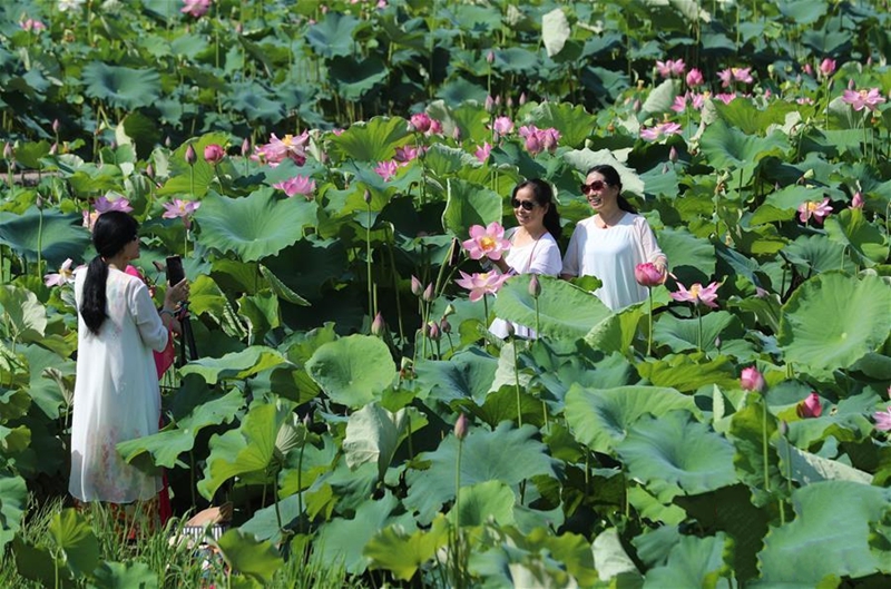 6月26日,游客在江蘇省淮安市楚秀園公園欣賞荷花。 端午期間正值各地荷花進入盛花期,人們紛紛走出家門賞荷度假日。 新華社發(趙啟瑞 攝)6月26日,游客在江蘇 ... [更多詳細]