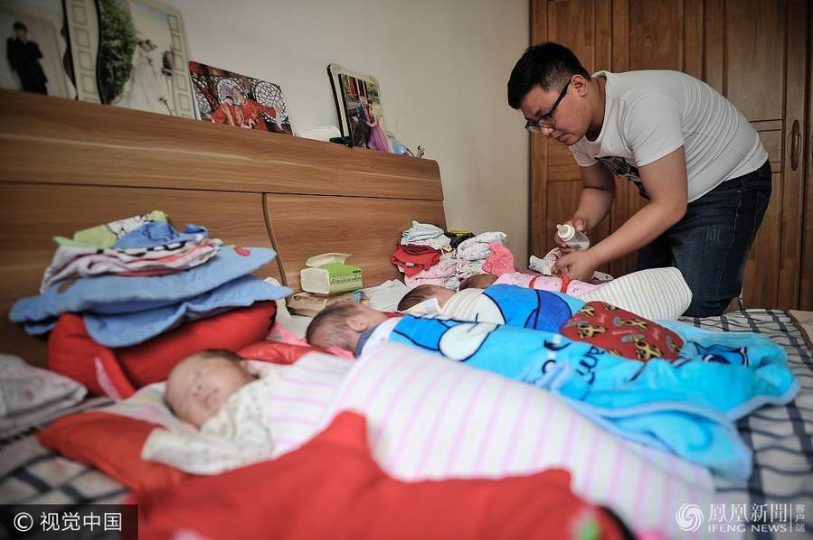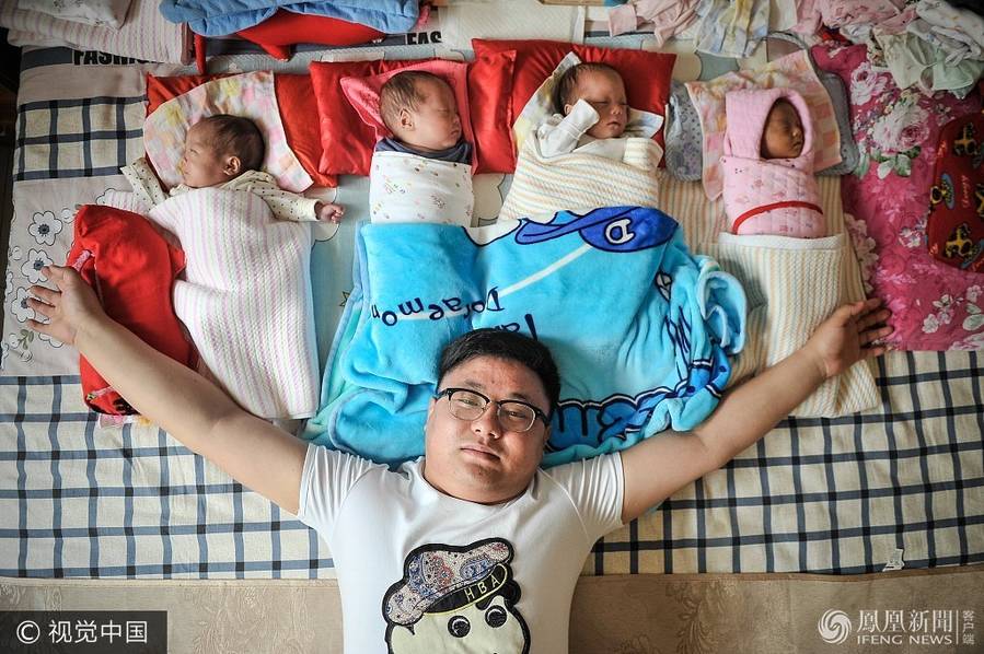 2017年6月15日報道,天津,今年是劉陽的第一個父親節。早在一年前,他自己也只是個貪玩的小伙,如今,四個孩子如重擔一般壓在他的肩頭。“他們就是個奇跡。”劉陽說。作為一位新晉“奶爸”,劉陽說他最大的愿望,就是看著四個孩子都能健康地成長。而他也會傾其所有,為孩子們帶來幸福。