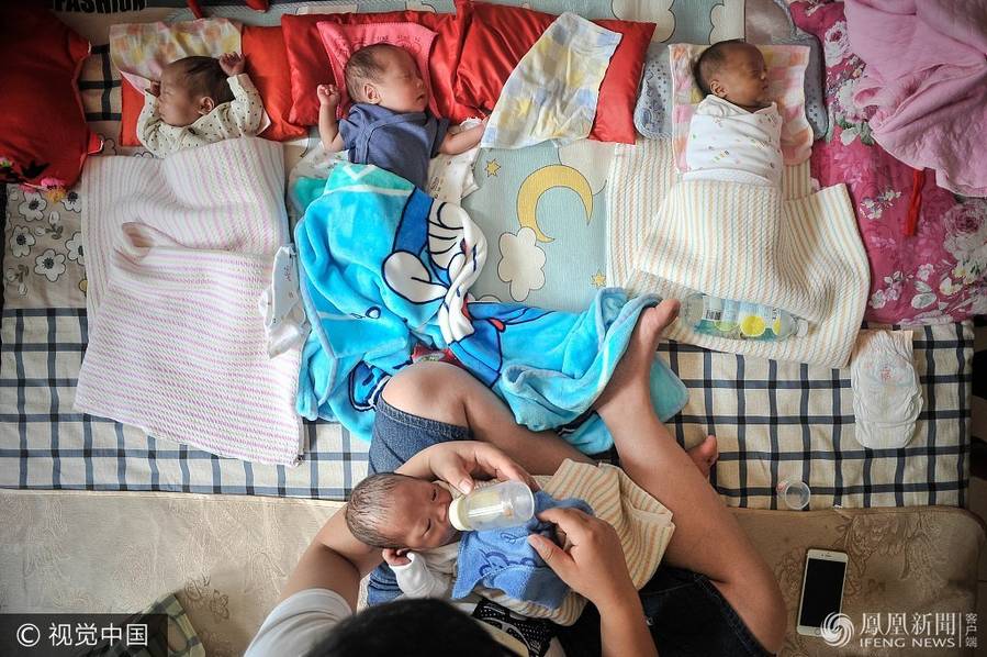 平時睡覺的時候,孩子們就像安靜的天使。然而一哭鬧起來,則會產生連鎖反應,一個接一個開始鬧,最后變成四重奏。“這種情況下,一個人都不知先顧哪個好。”劉陽無奈地說。家里的大人們一人哄一個寶寶,才能消停下來。在孩子出生之前,劉陽經常跟發小出去玩,參加各種聚會,也愛玩游戲。