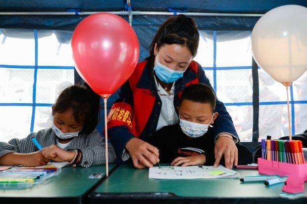 9月10日,在瀘定二中臨時安置點的&ldquo;帳篷課堂&rdquo;里,志愿者在教孩子手語游戲。   四川瀘定地震發(fā)生后,瀘定縣第二中學校成為臨時安置點,安置了 ... [更多詳細]