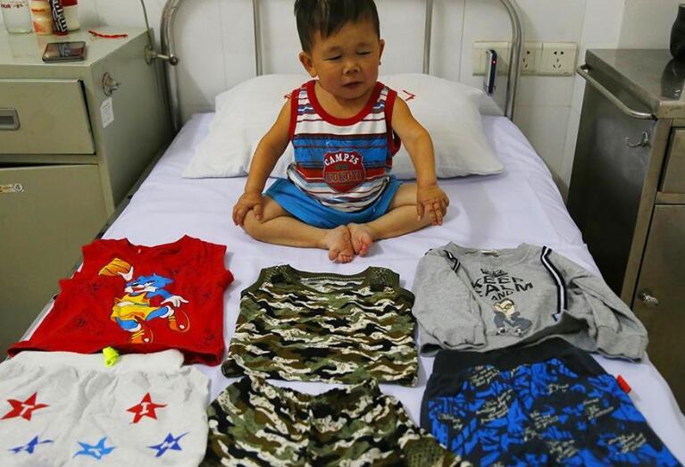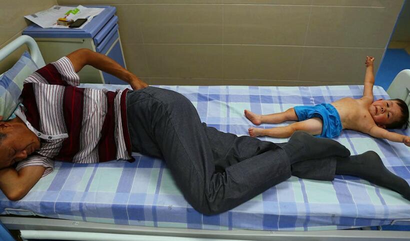 他不是一個小男孩。盡管他穿著童裝,看著也就兩三歲模樣和身高,實際上他已經是 29 歲的青年男子。但是由于從小他的身體缺少一種激素,醫生說他再也不可能長高了。他和父親一起住在醫院,平時他都要借助一些道具才能爬上床,也常常被一些陌生人當做小孩看待,這使他特別難過。由于天然的缺陷,他沒有去過學校,沒有交過什么朋友,也不敢喜歡女孩子。只和自己的父親相依為命。看著他的遭遇,真是揪心啊。祝福這對父子,希望有奇跡發生。