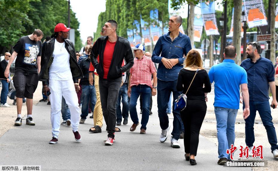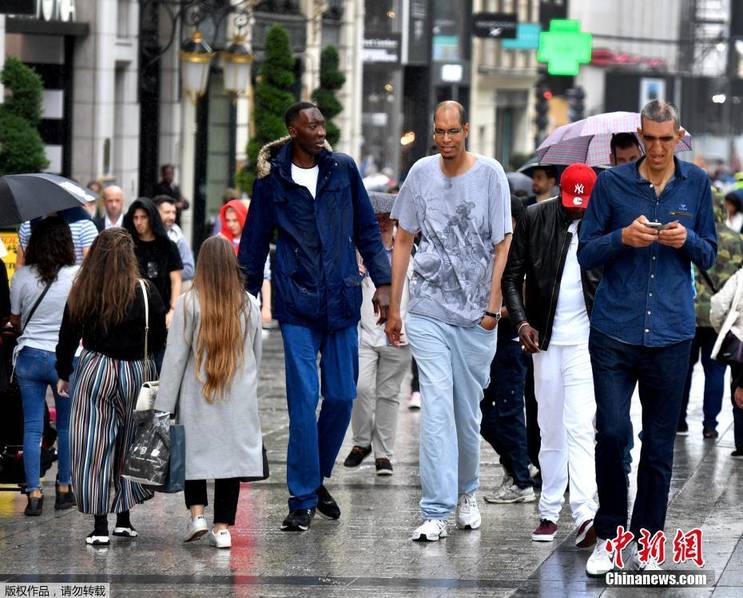 身高均超過2米的幾位男士走在巴黎街頭,周圍行人紛紛側目。