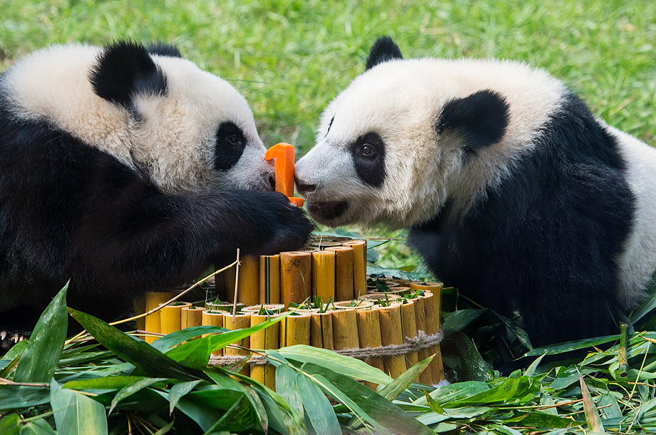 6月25日,大熊貓&ldquo;健健&rdquo;&ldquo;康康&rdquo;在生日慶祝會上。中央政府贈送澳門特區政府的大熊貓&ldquo;開開&rdquo;&ldquo;心心&rdquo;的雙胞胎兒子& ... [更多詳細]