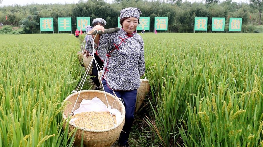 9月17日,人們在德清縣慶祝首屆&ldquo;中國農民豐收節&rdquo;活動開幕式上表演。  當日,浙江省德清縣慶祝首屆&ldquo;中國農民豐收節&rdquo;活動暨2018 ... [更多詳細]