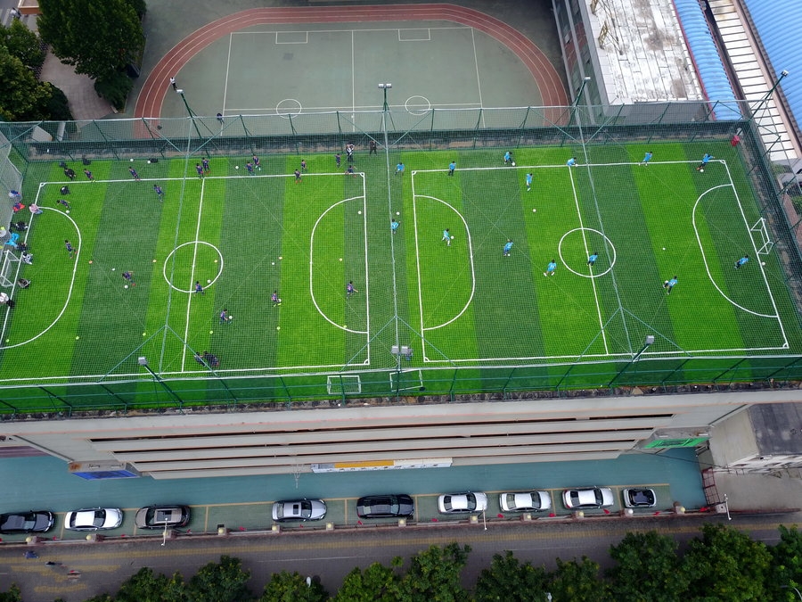 2018年9月28日,山東師大附小教學樓六樓頂,新建的空中球場啟用,足球隊的孩子們在人造草坪上舒暢地踢球。這是濟南的第一個空中足球場,長50米寬18米,采用5厘米 ... [更多詳細]