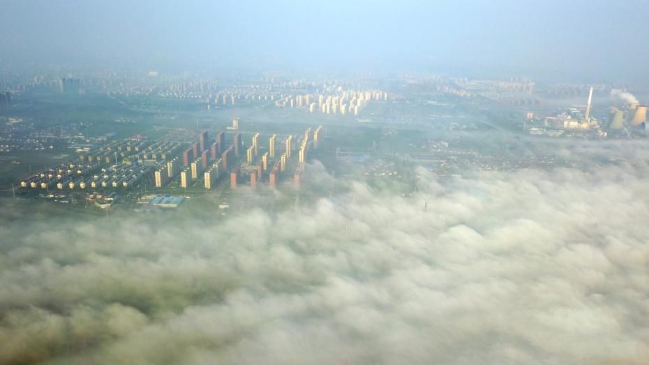 9月12日,古城揚(yáng)州上空出現(xiàn)平流霧,航拍城市,樓宇在霧海中若隱若現(xiàn),宛如仙境。