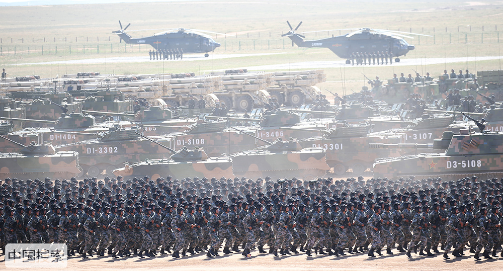 7月30日上午,慶祝中國人民解放軍建軍90周年閱兵在朱日和聯合訓練基地隆重舉行。中共中央總書記、國家主席、中央軍委主席習近平檢閱部隊并發表重要講話。這是習近平乘車檢閱部隊。