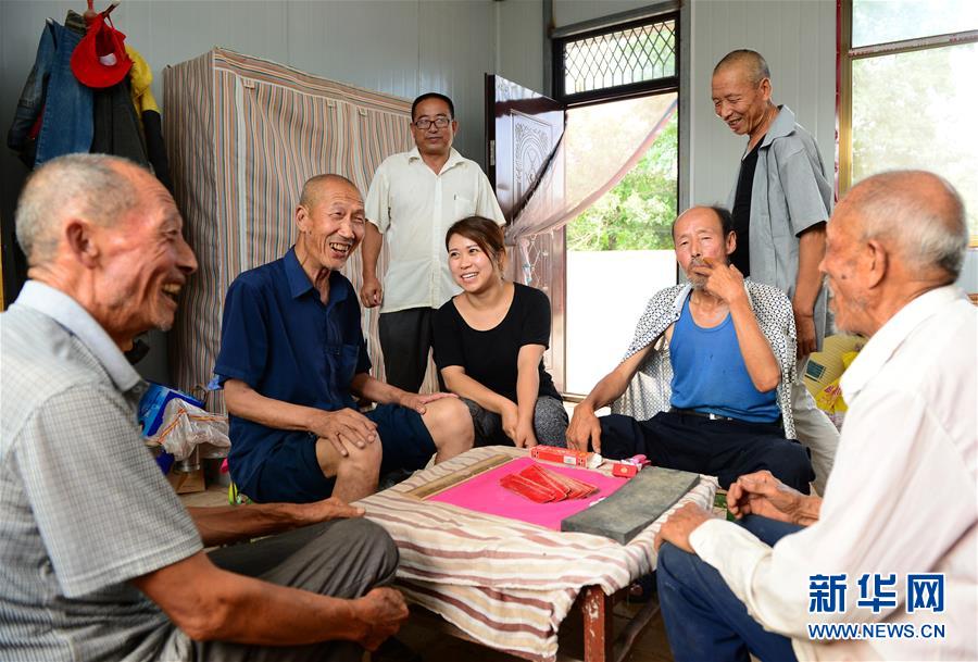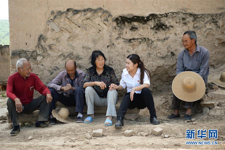6月22日,張文妮(右二)在榆樹村和乘涼的村民聊天。