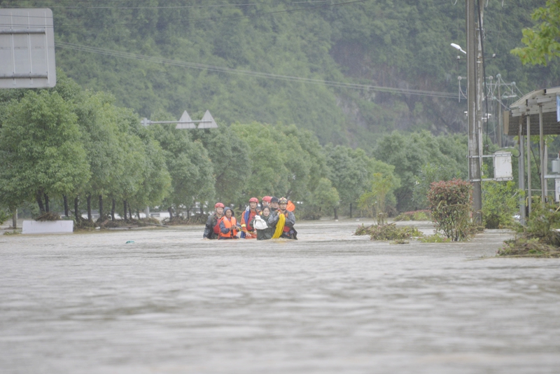 6月24日10時52分,開化縣消防大隊接到報警,稱馬金鎮多數村莊被洪水淹沒,有多人被困家中。