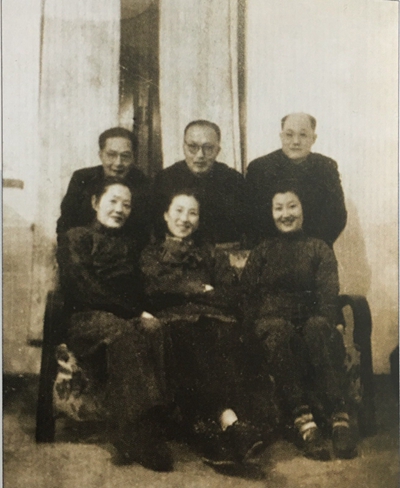 在武漢測量制圖學院,“測繪三杰”與夫人合影,后排左起王之卓、夏堅白、陳永齡