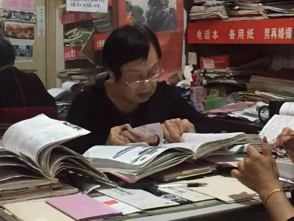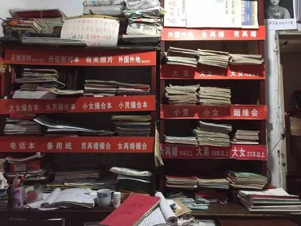 蘭毓云身材矮小,幾次腰椎手術(shù)之后,背也佝僂了。穿過人群,遠(yuǎn)遠(yuǎn)看去,她隱沒在案頭的一摞摞資料里。左手邊的書架上,擺放著超過120本單身男女的資料。全是手寫的,她不愿意把材料做成電子版,“會被別人看到”——這些資料是她的寶貝。每次配對只能通過簡單的分類和頭腦中的記憶搜索,緩慢低效。