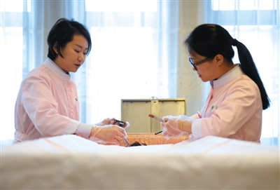 3月29日,北京八寶山殯儀館&ldquo;青清女子工作室&rdquo;整容師曲杰(右)和袁榕(左)正在為逝者整理遺容。入殮師,又被稱為遺體整容師,他們的工作內容是為逝 ... [更多詳細]