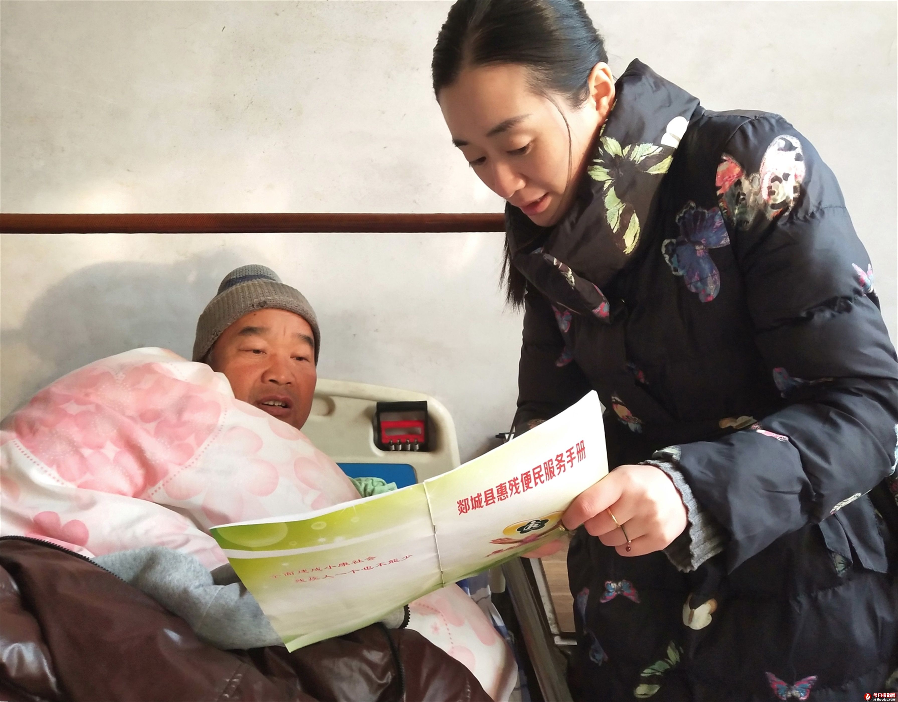 山東省郯城縣馬頭鎮便民服務中心工作人員拿著《郯城縣惠殘便民手冊》,日前來到馬西社區桑莊村重度殘疾人周正軍家中,在床前向他宣傳介紹惠殘便民知識。至此, ... [更多詳細]