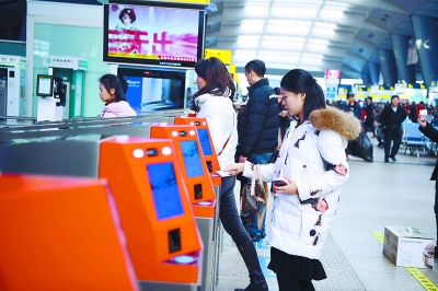 5日,在北京南站,乘京津城際鐵路的乘客在閘機前刷身份證進站。 本報記者 和冠欣攝 據鐵路部門統計,鐵路春運車票已售出逾3億張,12306網售車票占近九成。新推出 ... [更多詳細]