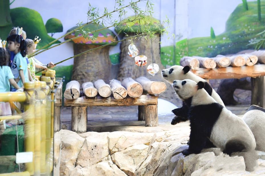 5月28日,生活在廣州長隆野生動物世界里的大熊貓吃著冰水果降溫消暑。當日,廣州最高溫度達35℃。 5月28日,廣州長隆野生動物世界內,小朋友們為大熊貓送上冰水 ... [更多詳細]
